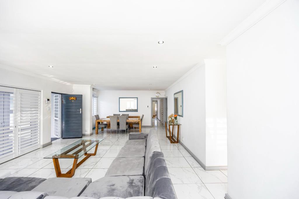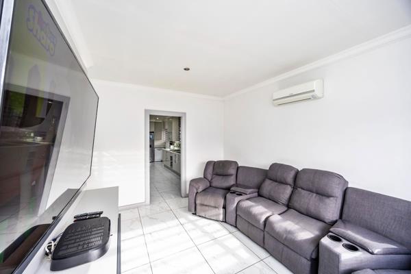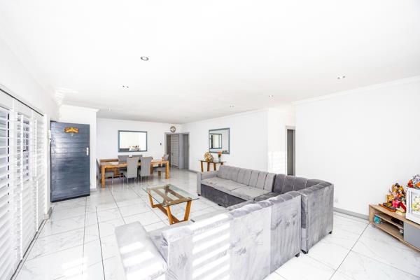 Modern Dual Living. Presenting a modern, light-filled home with sleek, contemporary design and large open spaces that seamlessly blend indoor and outdoor living. The main house features three spacious bedrooms, each with generous windows that invite in natural light, adding to the bright and airy ambiance. These rooms are designed with clean lines, minimalist decor, and touches of soft, neutral colors, creating a calm and welcoming atmosphere. The main suite has its own luxurious bathroom with a shower, double vanity and a walk-in-cupboard. The layout includes an open-plan living and dining room, and a kitchen area. The living area flows directly into the outdoor space through sliding glass doors, leading you to a beautifully designed entertainment area and swimming pool. Adjacent to the main home is a separate two-bedroom flat, perfect for guests or family, offering privacy with its own entrance, kitchenette, and cozy lounge area. This flat reflects the same modern and airy design as the main house, creating a harmonious aesthetic throughout. The entertainment room is a dedicated space for gatherings and fun, as well as a braai area and outdoor kitchen. This home merges style and functionality, perfect for those who enjoy hosting and appreciate a seamless blend of modern design and comfort.