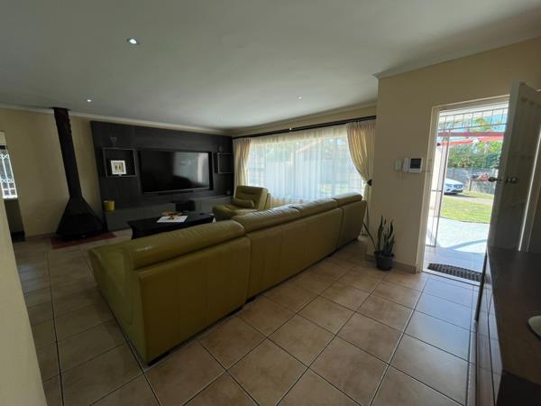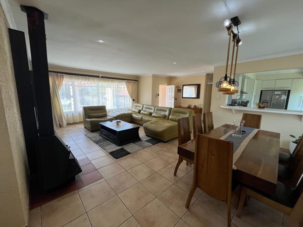Upon entering, you are welcomed by a light-filled open-plan lounge, dining room, and modern kitchen the perfect space for family living. The home flows seamlessly to a lovely entertainment area with a built-in bar and braai, ideal for gatherings with family and friends. Sliding doors open to the pool and outdoor area, creating a relaxed indoor-outdoor lifestyle.
