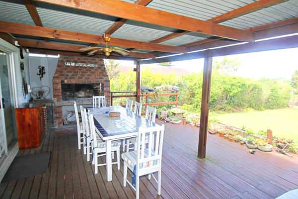 The versatile home office/study room could easily be converted into an entertainment lounge. This room leads out onto a covered wooden deck with built in braai, the perfect area to enjoy al fresco dining while soaking in the tranquil garden surroundings.