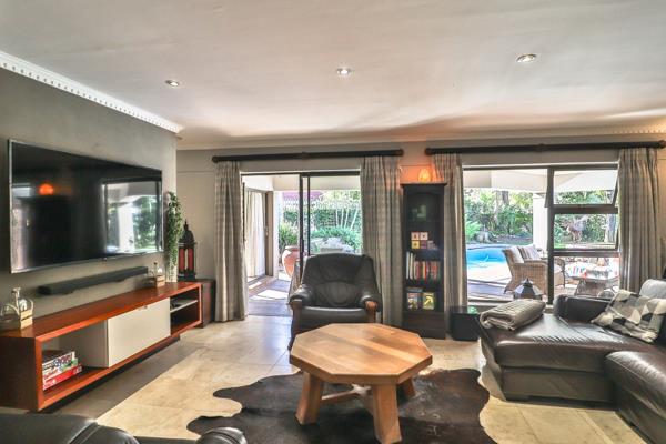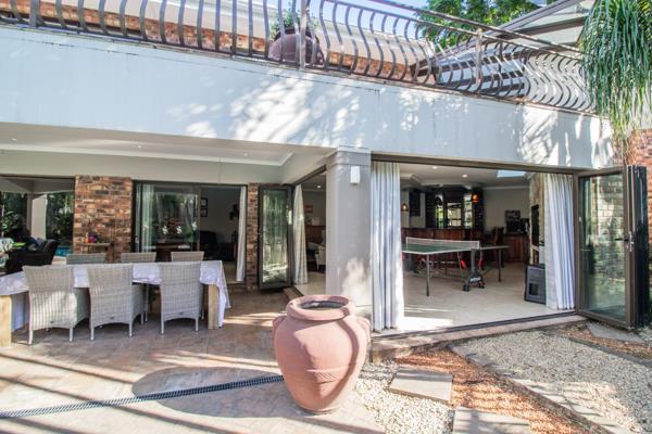 - Entertainment Area: To the left-hand side, there is a complete entertainment area with a built-in bar and indoor braai, leading out to an undercover patio with a water feature.