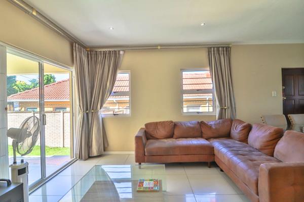 Modern lock up & go cluster home within a gated estate.Boasting a open plan loungedinningroom with sliding door opening onto a covered patio with built in braai & enclosed manicured garden.Modern kitchen with granite tops,3 bedrooms,2 bathrooms,single garage & 2 onsite parkings all within a secure estate. Call now to view this stunning property.