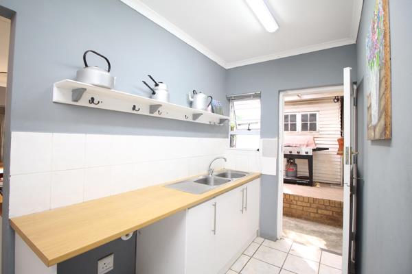 The kitchen is well-appointed and functional, with a separate scullery and laundry area, ensuring ample space for day-to-day tasks.