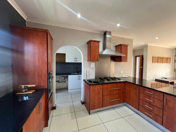 The swimming pool is privately set is a garden and flows from the covered patio and braai area - perfect for entertaining. Outdoor beams and burglar bars/Trellidors complete the security package and there are two 5000L water storage tanks. There is plenty of secured parking with a double garage and paved parking.