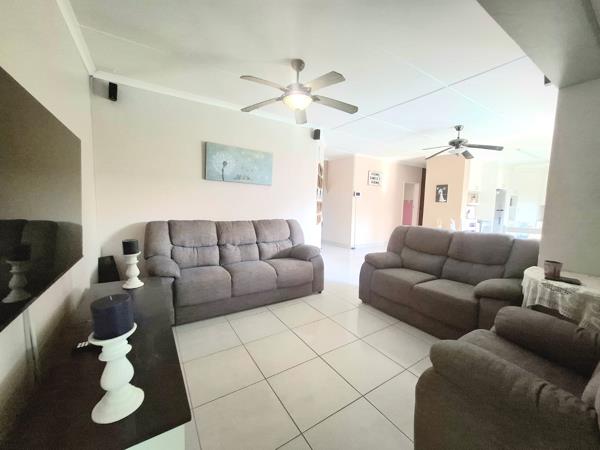 Step inside and enjoy spacious living with 3 bedrooms, all fitted with built-in cupboards and ceiling fans, along with 2 full bathrooms. The home boasts both a TV lounge and pajama lounge, plus a large study perfect for work-from-home needs. The modern kitchen comes complete with a scullery and laundry area, ensuring ultimate convenience.