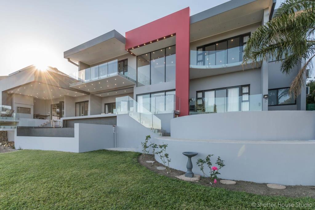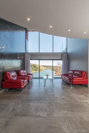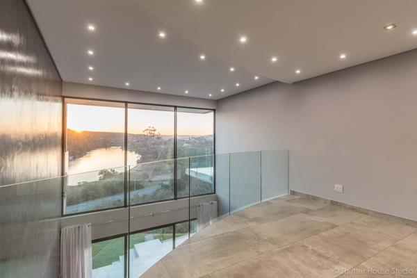 The gourmet kitchen is a chefs dream, showcasing top-of-the-line Siemens and Bosch appliances, sleek Niemann Acrylux cabinetry, and premium finishes throughout. Step outside to the ultimate entertainment haven, featuring a built-in braai and a stunning rim-flow pool overlooking the river.