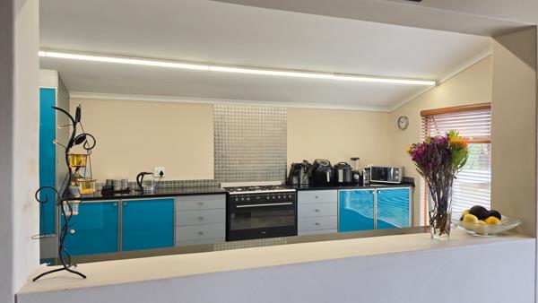 Step outside from the dining room and kitchen to discover a large patio, ideal for outdoor gatherings, complete with an outside braai and an inviting swimming pool that beckons for summer fun.
