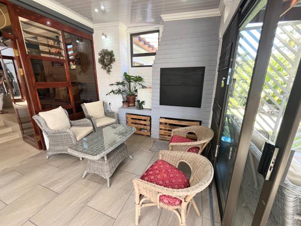 Step inside and youre greeted by an elegant and spacious home that flows effortlessly from one living area to the next. The covered patio looks out over the garden, creating a peaceful spot to relax and soak in the warm, welcoming atmosphere that fills the home. Designed with family living and entertaining in mind, the property features a built-in braai and an additional dining area with a modern kitchenette a wonderfully practical space for gatherings and celebrations.