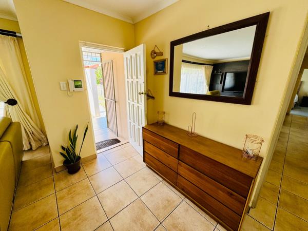 The main home features three sunny bedrooms, two tastefully upgraded bathrooms, and a well-planned kitchen fitted with ample cupboard space. The living areas are designed for easy flow, with a dedicated entertainment room that includes a built-in braai. Sliding doors open to a covered patio overlooking the sparkling pool an ideal spot for weekend relaxation or hosting friends.