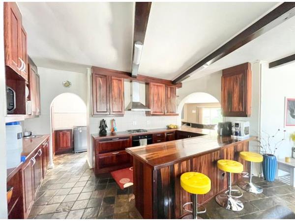 Lovely open plan living with 3 lounges, Bar, Dining room & Kitchen with solid wood & gas stove.