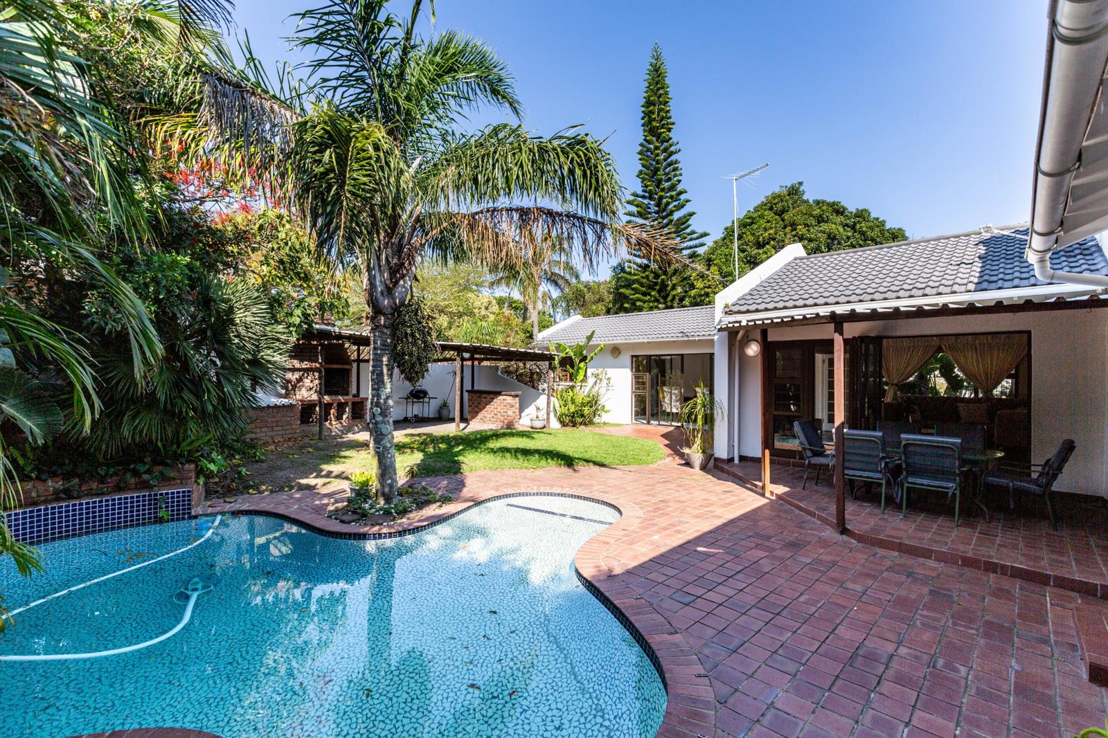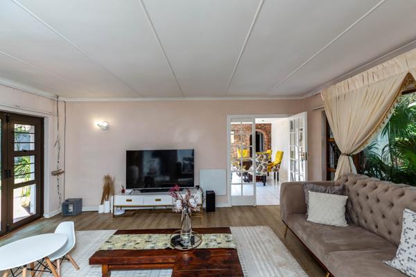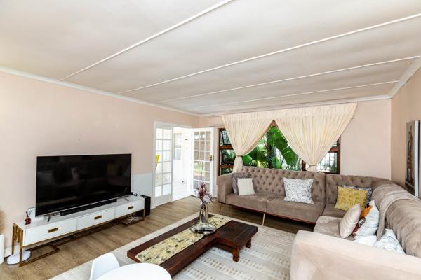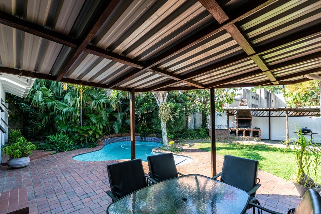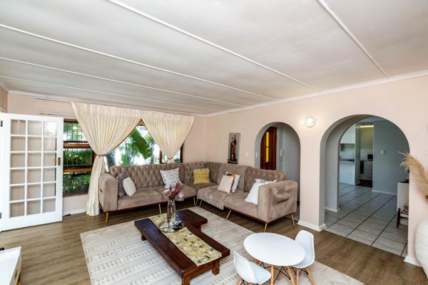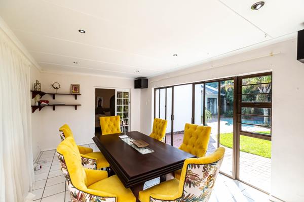 A well appointed kitchen includes ample workspace, a separate scullery, and direct access to the double garage for added convenience. The home offers four spacious bedrooms with built-in wardrobes and two bathrooms, including a main en suite. Three of the bedrooms enjoy direct access to the outdoor patio and pool area through sliding doors, enhancing the sense of space and connection to nature