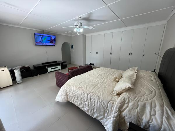 Downstairs, the home transforms into an entertainers dream. A fully fitted bar, second lounge, kitchenette, and dining area set the stage for gatherings. A generous guest suite with its own full en-suite bathroom and an additional guest toilet completes this level. Doors open directly onto the pool and built-in braai areaperfect for long summer days of fun and laughter.