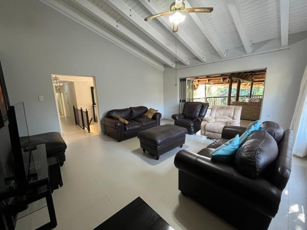 Step through the front door and youre greeted by an elegant, open-plan home designed with family living in mind. The upper level boasts a well-appointed kitchen, dining room, and lounge that flow seamlessly onto a charming thatched lapa, overlooking the lush wild garden and sparkling swimming pool. Here, countless memories are waiting to be made. This level also hosts three spacious bedrooms, including the main with a luxurious full en-suite, plus a family bathroom servicing the remaining rooms.