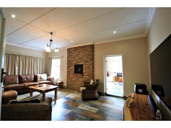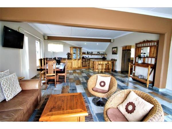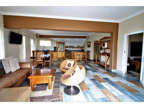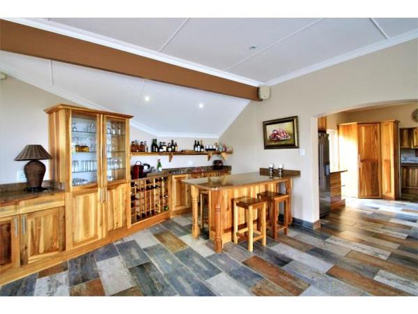 The main house has a grand entrance with chandeliers leading upstairs to the house. Situated on the same level is a study, a large formal lounge with a fireplace which flows through to the family room, dining area and bar. the is a sliding door leading out onto the patio with amazing views and has a built-in jet master braai.