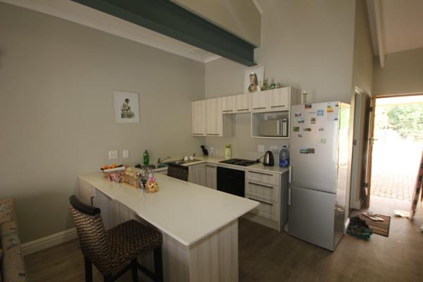 Nestled in Silverstream and overlooking the stream, this standalone two-bedroom, one-bathroom residence features a modern open-plan living area and bathroom. The ultra-modern kitchen boasts Caesarstone tops, complemented by a family lounge with French doors that open onto a concrete patio with a built-in braai area. This unit is finished with high-end, contemporary touches that enhance the propertys appeal.