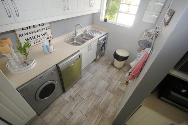 When you step through the double door entrance you will be in awe of the beautiful layout. On this level you will find an elegant TV lounge, dining area and an ultra-modern kitchen featuring a central island with gas hob, double eye level ovens, built in cupboards and a separate scullery with dishwasher, washing machine and tumble dryer connections. For yours and guests privacy there is a guest bedroom on this level together with a guest bathroom featuring a shower, basin, and toilet.