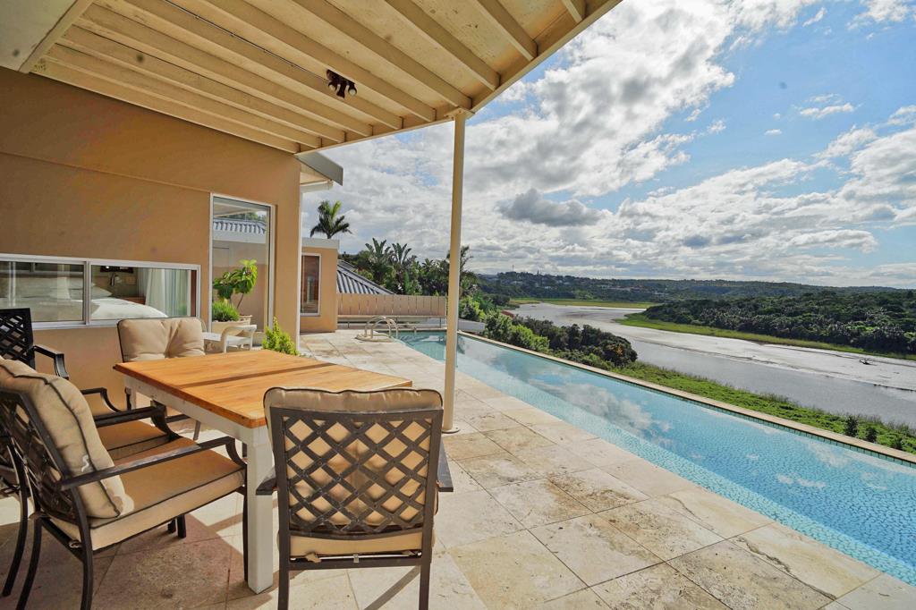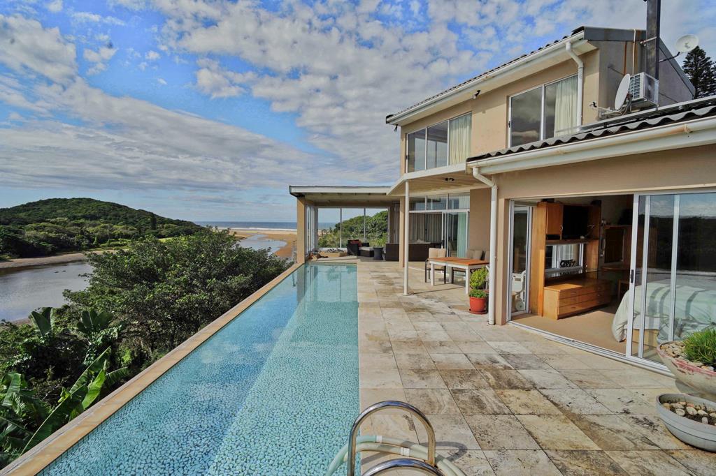 The main house is extremely impressive, featuring an open-concept living area, a kitchen with a separate scullery, a spacious lounge, a guest toilet, and a covered entertainment area where you can sip your drinks and watch the sunset , or sunrise!. Wellness and leisure are central, with an infrared sauna, a swimming pool, and a gym that boasts breathtaking views of the river and sea. The main bedroom opens directly onto the pool and enjoys panoramic views, while a second bedroom includes its own shower and basin. The home is sustainably equipped with solar panels and four water tanks, making it both luxurious and eco-conscious.