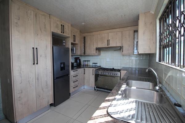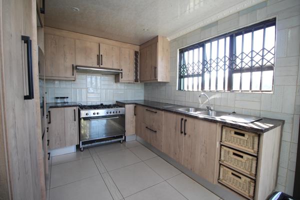 This fully walled property features laminate flooring throughout the living areas and sleek ceramic tiles in the kitchen. The modern kitchen boasts eye-catching built-in cupboards, a fitted gas stove and hob.