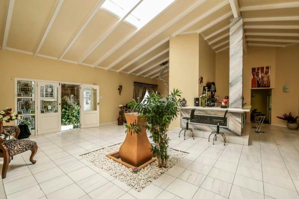 Superb architect-designed family home. Double-volume entertainment areas, well designed layout and many bedrooms are the characteristics of this home. Conveniently located close to Stirling High school, various sports amenities including the famous East London Golf Club, this single storey home is situated on a large corner property and ideal for family living. The exterior is low maintenance and built with a facebrick finish. The property boasts a stunning water feature in the entrance hall and the layout is perfect with the reception areas flowing to the pool area. There are four bedrooms, three bathrooms, an outside apartment and a double garage with loads of parking as well as CCTV camera security.