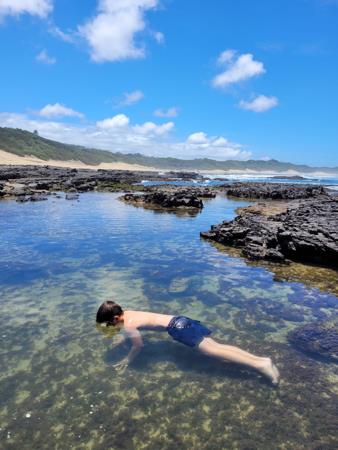 Build your own haven from this pan-handle 655m2 fully serviced plot. Perfectly situated behind a lush vegetation dune that shelters the estate from the ocean. With its cozy location position, you can enjoy the abundance of bird life, monkeys playing and buck visiting.