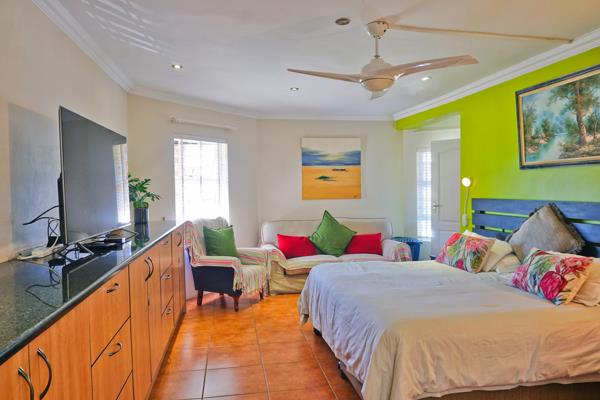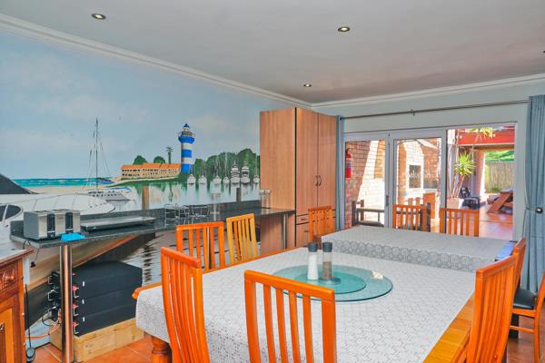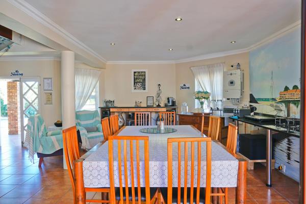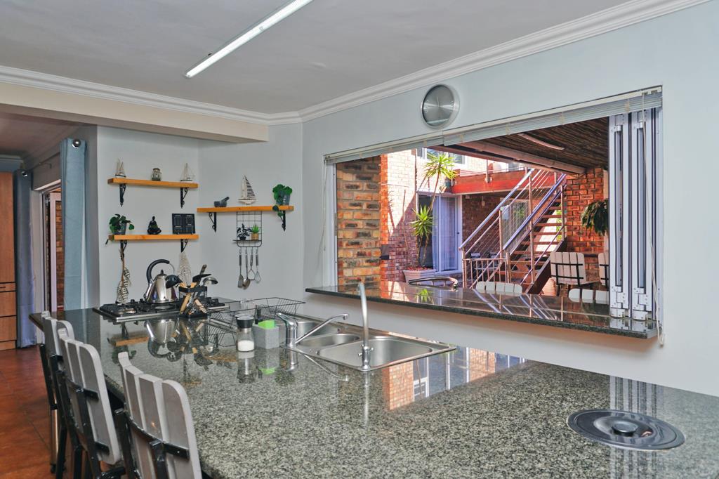 The heart of the home is an open entertainment area that connects the kitchen, breakfast nook, and dining room to a spacious courtyard. This courtyard is perfect for hosting gatherings, complete with a built-in braai and bar. Above, a well-equipped gym with changing rooms invites guests and families to enjoy a workout.