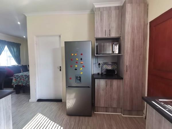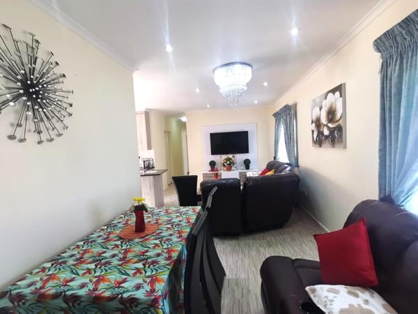 This modern and beautifully maintained three-bedroom home is perfectly situated in a secure gated estate. The house features two bathrooms, including a main bedroom with a stylish en-suite. The open-plan layout seamlessly connects the dining area and lounge, creating a spacious and inviting atmosphere ideal for family living and entertaining.