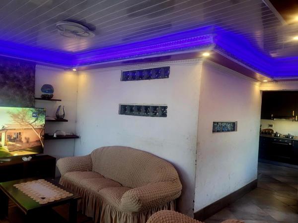 A family home with 4 bedrooms, 2 bathrooms, a lounge with a fire place dining, and a modern and beautiful kitchen, plus a garage.
