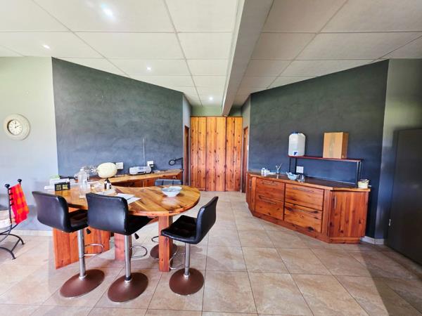 Main Home: A large 3-bedroom, 3-bathroom residence featuring an open-plan lounge, kitchen, and dining area. The undercover deck with built-in braai overlooks the paddocks perfect for sundowners and watching your horses roam.