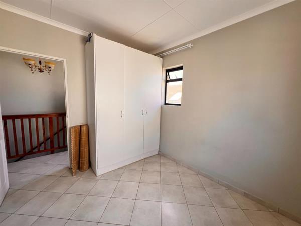 Additional features enhance the appeal of this townhouse. Enjoy the peace of mind that comes with 24-hour guard security in a gated community, complemented by an electric fence and guard house. The property also boasts secure parking and visitors parking for added convenience. Inside, youll find built-in cupboards for efficient storage, tiled floors for easy maintenance, and aluminium windows that allow for abundant natural light.