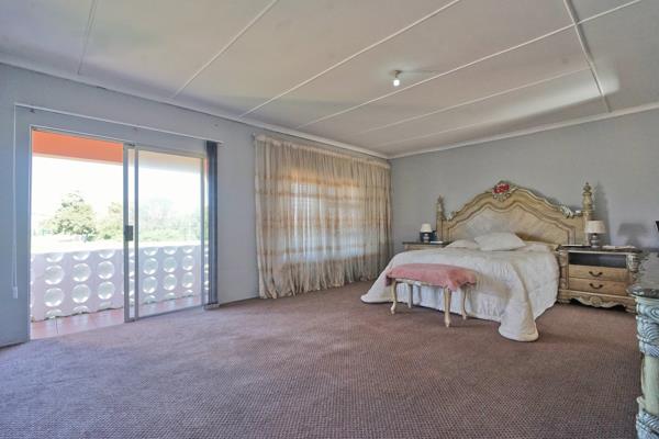 The main bedroom is located upstairs and includes an en-suite bathroom, while the remaining 4 bedrooms are situated downstairs. Additional features include a double garage, electric fencing around the perimeter, and an electric gate for added security.