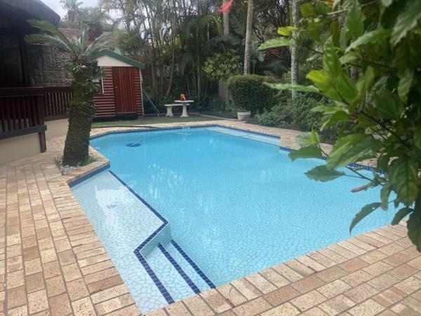 The large yard faces the river and provides an exceptional play area for family and pets. Entertain your guests or simply unwind under the newly thatched lapa with a built-in braai overlooking a beautiful sparkling newly upgraded pool surrounded by lush greenery.