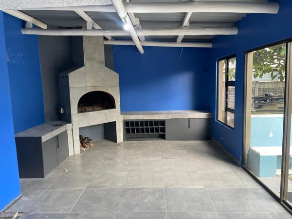 From the lounge, the home flows seamlessly into a spacious indoor entertainment area complete with a built-in braai and sliding doors fitted with security gates. This area opens onto an outdoor entertainment space featuring a second braai perfect for relaxed family gatherings or weekends with friends. The swimming pool, with a little TLC, can easily be restored to become a standout feature once again.