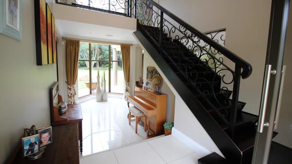 At the heart of the home, the gourmet kitchen is a chefs dream, fitted with granite countertops, a gas stove a separate scullery with ample storage. The dining room seamlessly connects the living spaces, making family gatherings a delight.