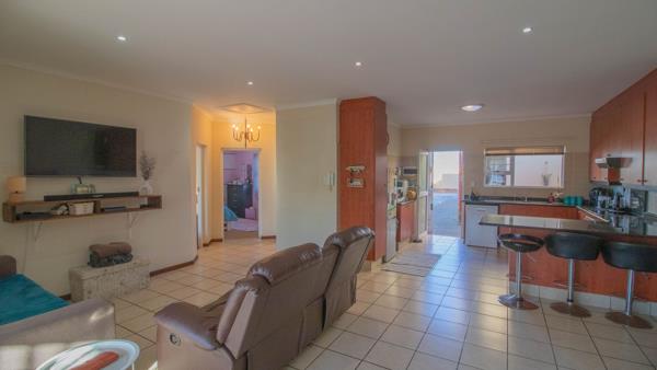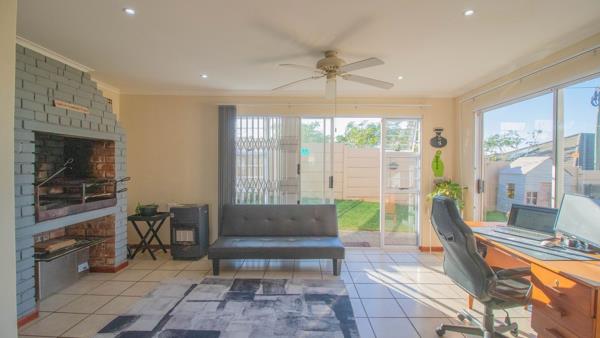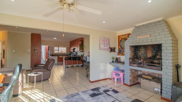A bright, open-plan living area, seamlessly connecting the lounge, dining room, and a beautifully finished modern kitchen. An indoor entertainment area with built-in braai, perfect for hosting no matter the weather. Lovely outdoor flow onto a private patio, ideal for relaxed gatherings and summer braais. Additional features include: