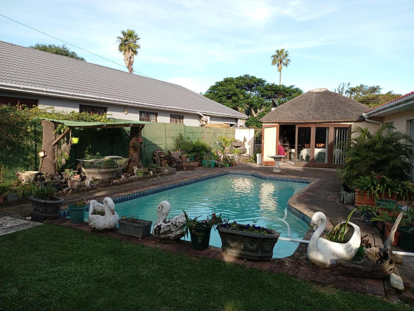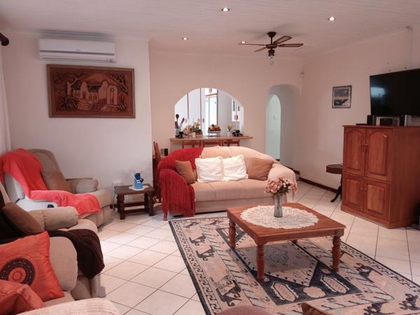 Set in a lush, beautifully maintained garden, this home features a sparkling pool and a thatched entertainment area with a built-in braaiperfect for hosting guests and enjoying the warm coastal climate.