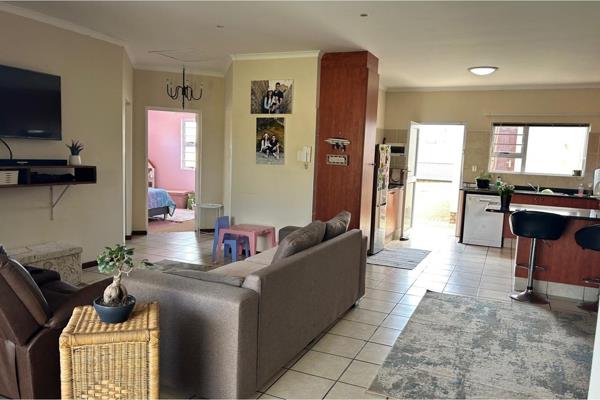 Modern Kitchen with Built-in Braai:The well-appointed kitchen is designed for functionality and ease. It offers ample storage space, a practical layout for meal preparation, and easy access to the living areas. A built-in braai in the lounge area adds a touch of South African tradition, making it perfect for entertaining guests or enjoying cozy meals at home. The open plan area extends to the outside, creating a seamless indoor-outdoor flow for those balmy evenings.