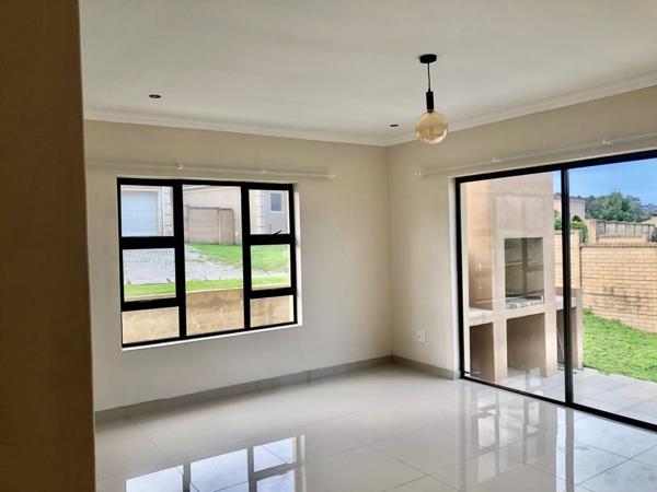 Featuring 3 bedrooms, 2 bathrooms, open plan lounge and kitched that leads to the built-in braai area, solar gyser and a double garage.