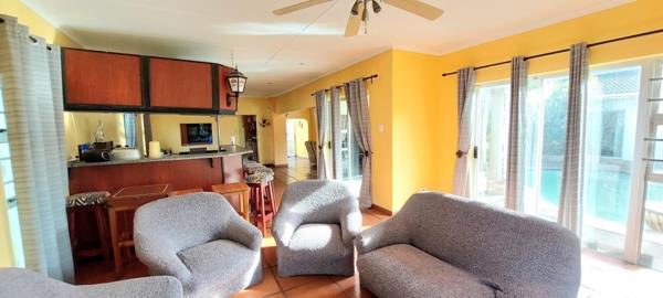 Designed for seamless indoor-outdoor living, all bedrooms and living areas open out to a central swimming pool, creating a resort-style atmosphere. Two lounges and a dedicated bar area provide ample space for relaxation and entertaining. The kitchen includes a separate scullery and laundry for added convenience.