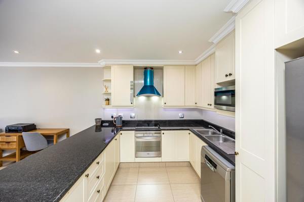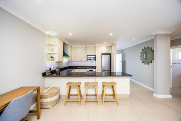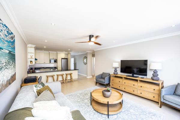 Immaculate corner unit in security complex. This contemporary townhouse meets high living standards with sunlit rooms and quality fittings and finishes. The airy open plan living area has sliding doors that open to an outdoor haven, while the welcoming kitchen offers ample storage and workspace, as well as a brand-new glass hob and extractor fan. The unit offers two spacious bedrooms and two modern bathrooms, one of which is en suite. Extras include a 5kw Sunsynk inverter with 8 solar panels, fibre connection, single garage and parking bay.