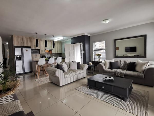 This well loved home will impress you from the second you walk through the front door and see the space this lovely 2 bedroom home has to offer. The undercover patio area will be the perfect setting for those beautiful summer evenings or early spring mornings, the patio flows through open stack away doors to the open plan lounge and stunning kitchen with granite tops, modern splash back tiles, dishwasher connection, gas hob and electric oven. You have 2 spacious bedrooms with the main bedroom having an en suit bathroom, aircon and sliding door to the private backyard, 2 beautiful bathrooms, solar geyser, single garage and braai area.