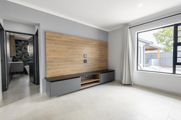 The home welcomes you with a double undercover paved parking area and a spacious yard that flows beautifully toward a gorgeous swimming pool. Next to the pool, youll find a stylish undercover braai and entertainment area, ideal for relaxing weekends or hosting family and friends in a seamless indoor-outdoor setting.