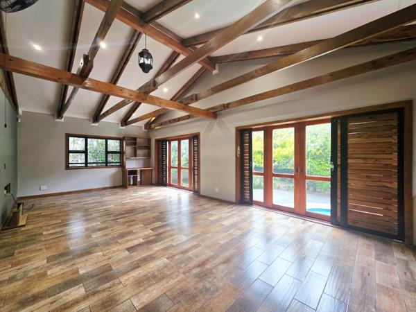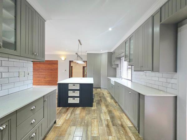 Step outside to your private paradise a built-in braai area overlooking a sparkling pool and lush landscaped garden, perfect for lazy weekends or hosting friends and family. A double garage and double carport offer plenty of parking and storage space.
