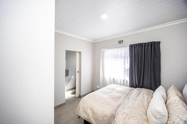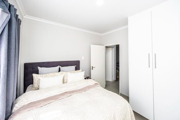 Inside, youll find a bright and airy open-plan kitchen and lounge thats perfect for everyday living or entertaining guests. The kitchen is thoughtfully designed with ample cupboard space and easy access to the lounge, which opens through sliding doors to the outdoor area. The main bedroom comes with a private en-suite, while the second bedroom is generously sized and has access to a separate bathroom.