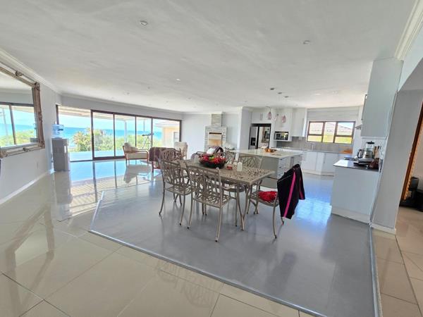 This stunning property offers effortless, elegant living with an open-plan lounge, dining room, indoor braai area, and a modern kitchen, all flowing seamlessly and overlooking the most spectacular sea views.