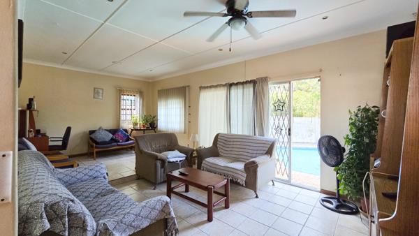 The home offers three bedrooms, one bathroom, a welcoming open-plan lounge and dining area, and a beautiful kitchen with an adjoining scullery or laundry area. Additional features include a servants room with a separate entrance, a covered braai area next to the pool, a double garage, and a convenient storeroom.