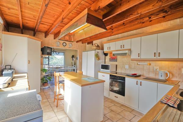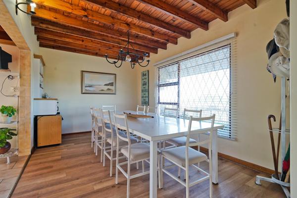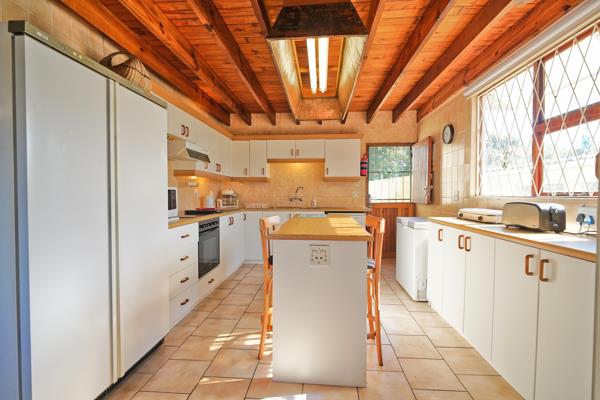 The well-appointed kitchen has a large pantry and ample cupboard space, accentuated by charming wooden beams and ceilings. As the first residential home in Kaysers Beach, this property sits on a historical erf, adding to its unique character.