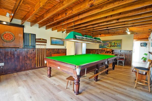 The entrance sitting room is designed for relaxation and entertainment, complete with a TV and bar. A second lounge, currently utilized as a large pool room, adds to the home''s recreational appeal. The formal lounge and master bedroom are situated upstairs, providing a private retreat, while two additional bedrooms are located on the ground floor.
