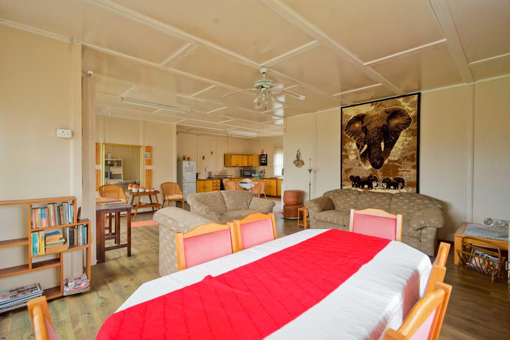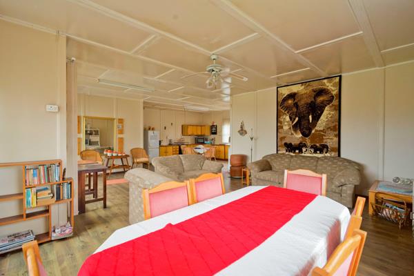 This modular home is move-in ready and includes three bedrooms, a garage, and a combined storeroom/laundry. The full bathroom complements the spacious living area, which opens onto a covered patio with a built-in braai, ideal for outdoor dining and relaxation.