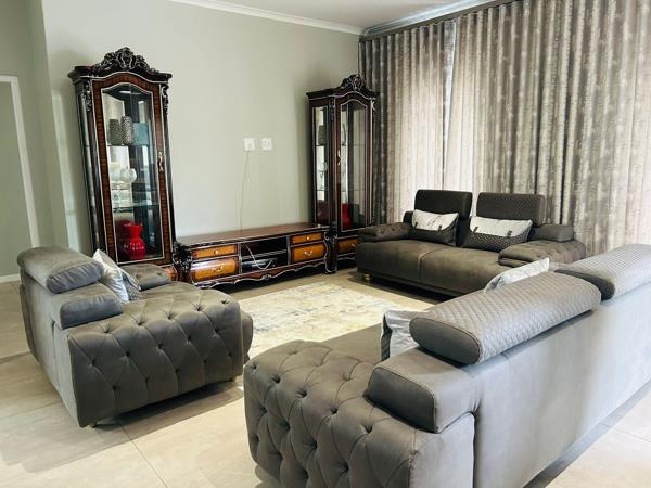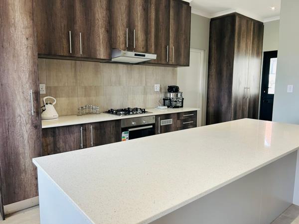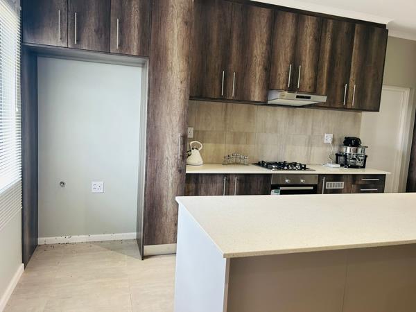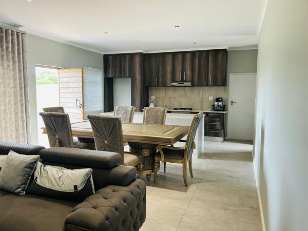 This property features a stunning kitchen with custom-made cabinets, a lovely island, and plenty of storage space. It also includes a separate scullery for added convenience. The home has an open-plan living and dining area that creates a welcoming atmosphere.