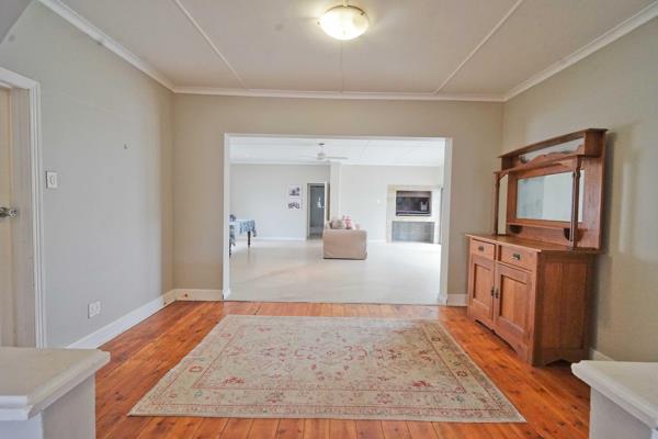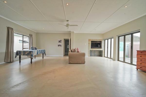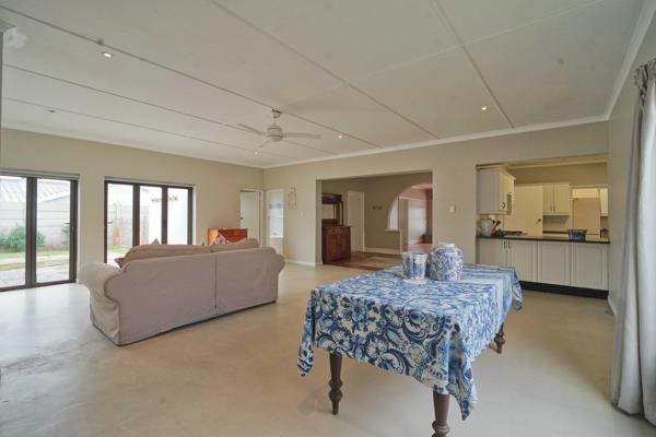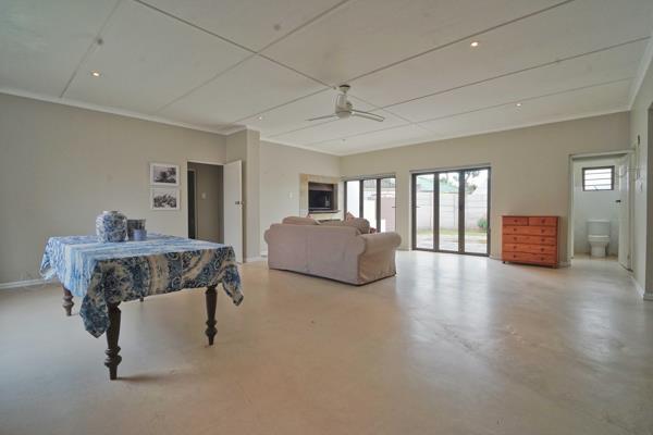 Enter the house and walk through a curved, dome-like entrance into a generously scaled living area where high ceilings and natural light create an open, airy feel. This is indeed a beautiful space for livingentertaining and includes a built-in braai which leads onto a patio and pool. The house offers five well-proportioned bedrooms and two full bathrooms, ideal for those needing both space and privacy.