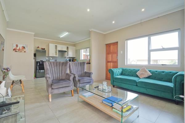 Open-plan living area leading onto a covered patio with built-in braai perfect for entertaining